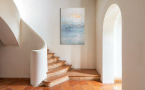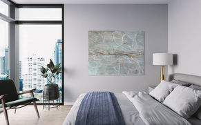 Distant Glow evokes the quiet beauty of a horizon touched by the first or last light of day. Gentle washes of blue and misty neutrals are enriched with textured layers, while a delicate line of gold cuts across the canvas like a fleeting shimmer of sunlight. Soft and contemplative, the piece invites a sense of calm and reflection, making it an ideal addition to hospitality interiors. Perfect for lobbies, corridors, or suites, it offers a tranquil atmosphere with a refined, modern elegance.