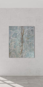 Earthen Mist captures the meeting of land and sky through soft veils of neutral tones and organic textures. The lower half evokes weathered earth and stone, rich with natural patterning, while the upper canvas dissolves into airy layers of light grey and cream. This juxtaposition of grounded strength and atmospheric calm creates a work of quiet sophistication. Ideal for hospitality interiors, it lends warmth and elegance to lobbies, dining spaces, or guest suites.