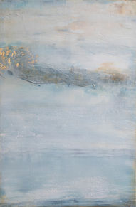 Celestial Horizon blends cool, textured layers of blue and silver with a gentle golden radiance above, evoking the moment where land, water, and sky dissolve into one. The piece carries both tranquility and quiet strength, offering a horizon that feels infinite yet inviting.